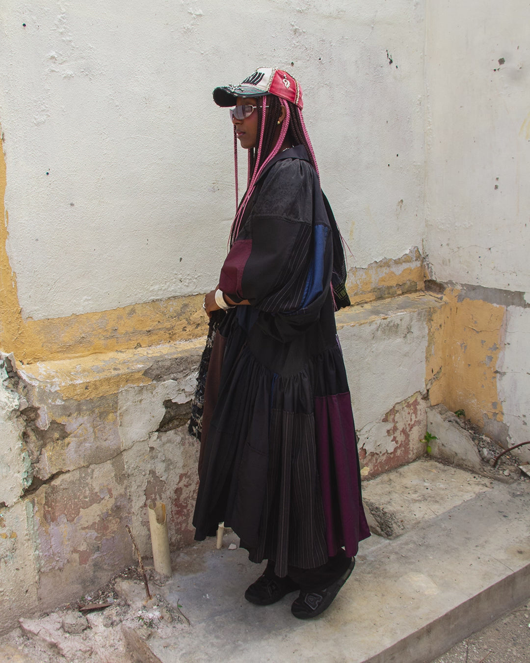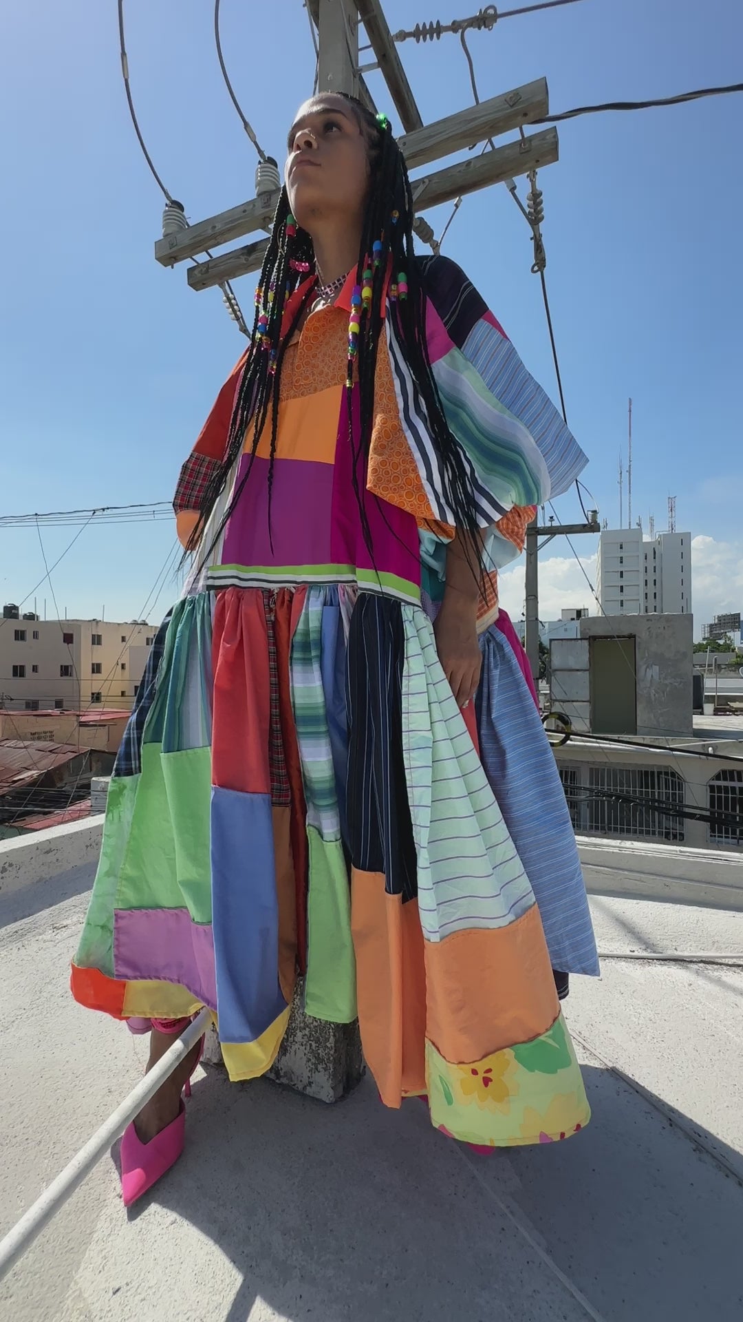 Dress is made from about 30 dress shirts we source locally from the flea market that would otherwise end up in landfills due to minor stains and/or holes. All shirts are washed, inspected and deconstructed to repurpose materials and create our oversized shirt dress.